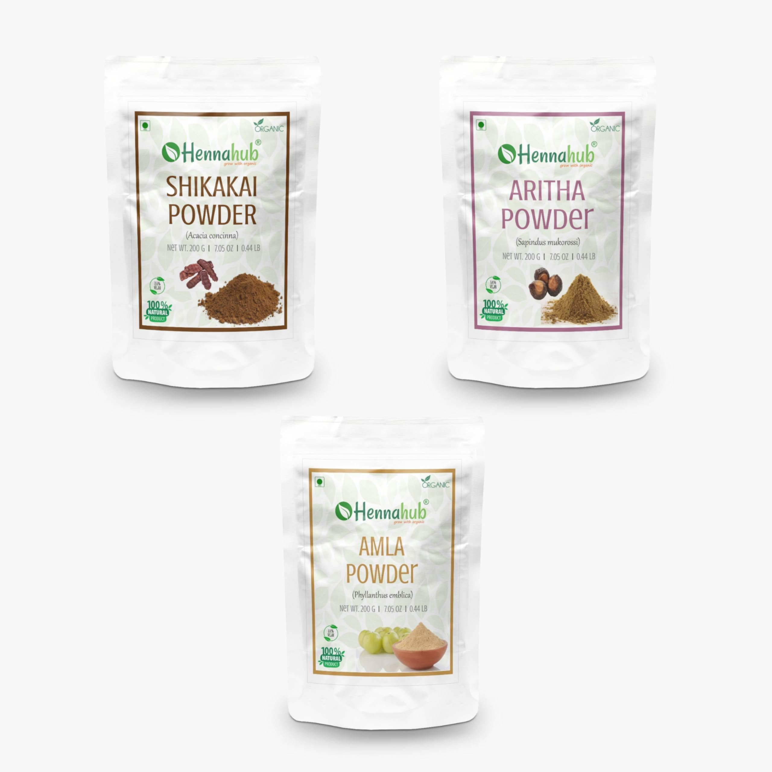 HENNAHUB Hair Care Combo Amla, Reetha, and Shikakai Powder (1kg Each) Super Saver Jumbo Pack with Free Iron Bowl for Ultimate Hair Care | Helps Reduce Hairfall & Improve Hair Quality