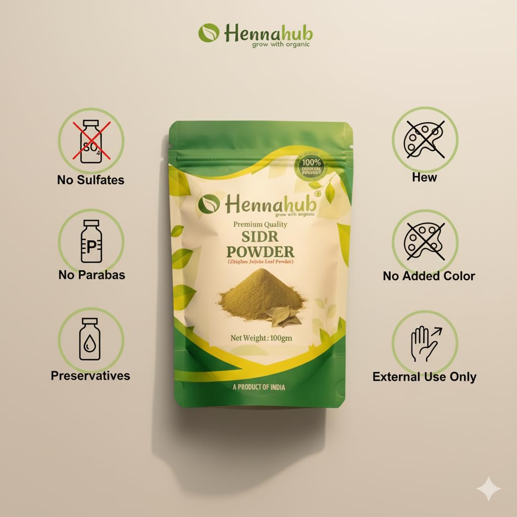 Hennahub Sidr Powder for Hair Care 100gm Pack | Pure Ziziphus Spina-Christi Leaf Powder | Natural Cleanser, Conditioning Herb & Herbal Shampoo Alternative