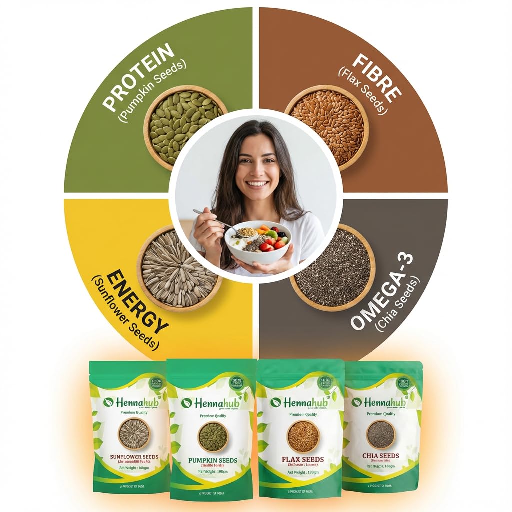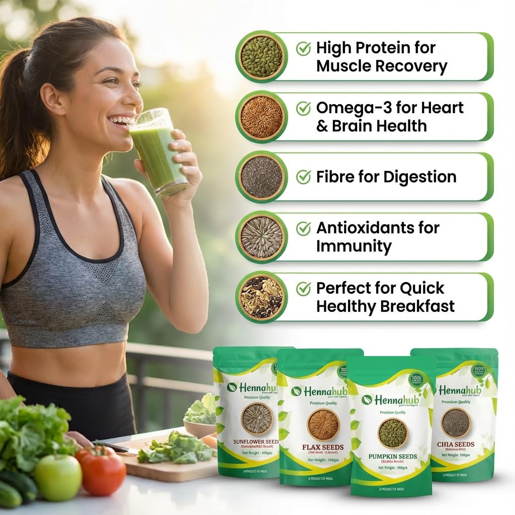 Make your everyday meals smarter, healthier and tastier with Hennahub Super Seeds Breakfast Mix - your easy step towards a nutrient-rich lifestyle.